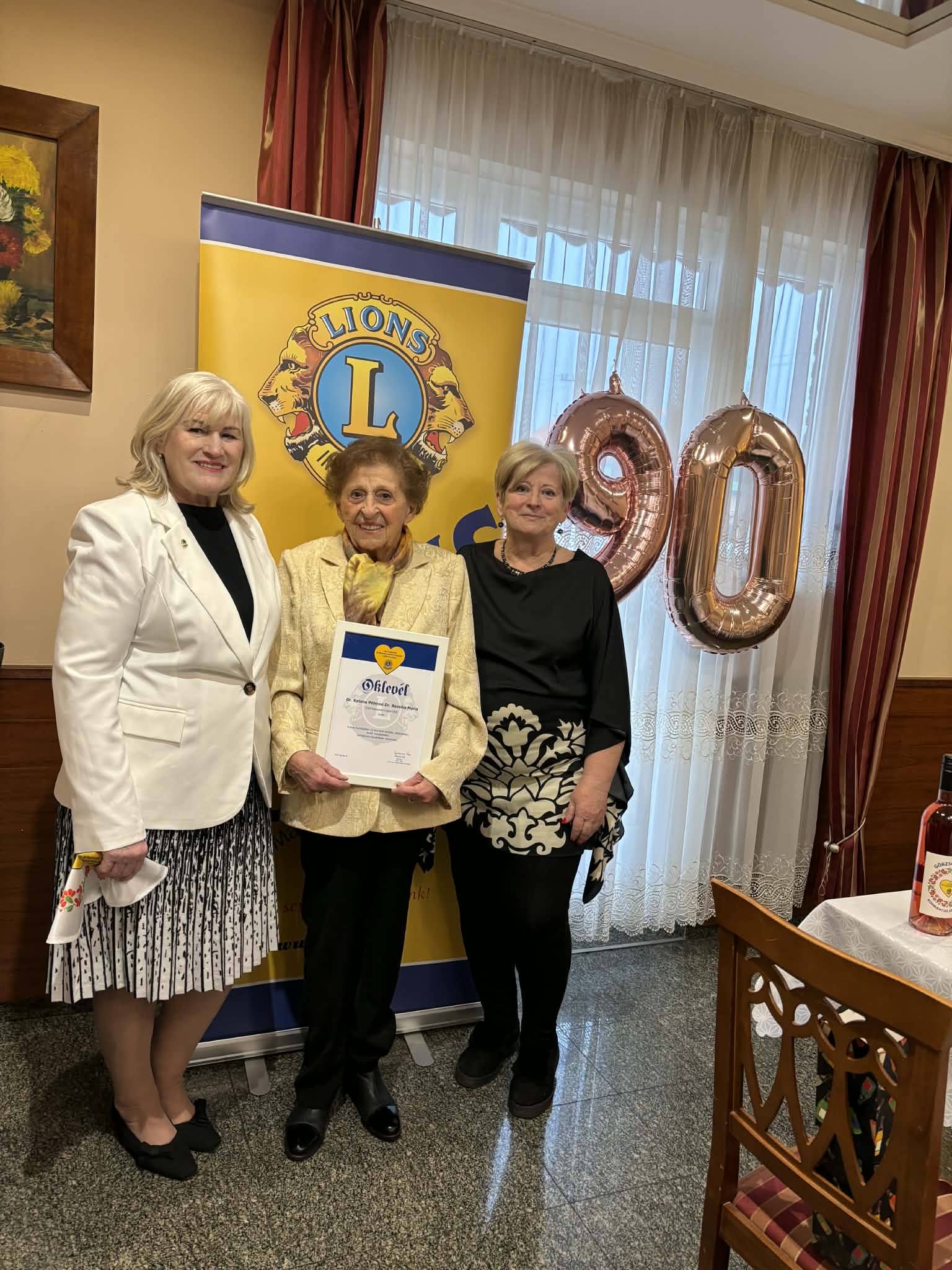 Megható és emelkedett hangulatú ünnepélyes klubülésen köszöntötte 90. születésnapja alkalmából alapító tagját, Dr. Bazsika Mária szemész főorvost az Első Kaposvári Lions Club a Tenisz Panzióban.